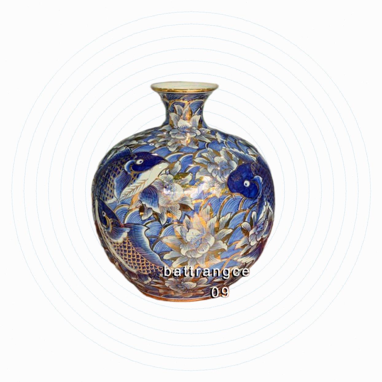 Bình hút lộc vẽ vàng 24k mẫu Sen Cá cao 30 cm