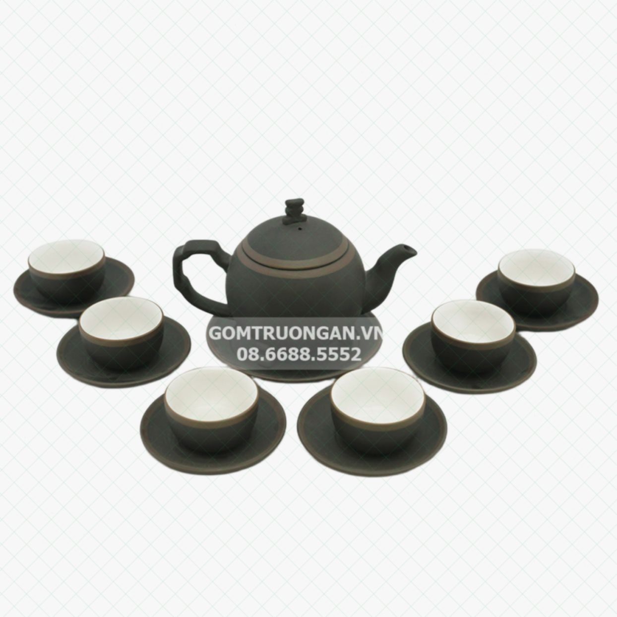 Bộ ấm chén tử sa Bát Tràng cây thông đen kẻ chỉ được nung ở nhiệt độ cao đến 1300 độ C tạo nên ưu điểm an toàn đến sức khỏe người dùng mini , bền chắc nổi tiếng , hạn chế trầy xước thanh lý , bể mẻ do va chạm trong khi sử dụng Pháp , vận chuyển.