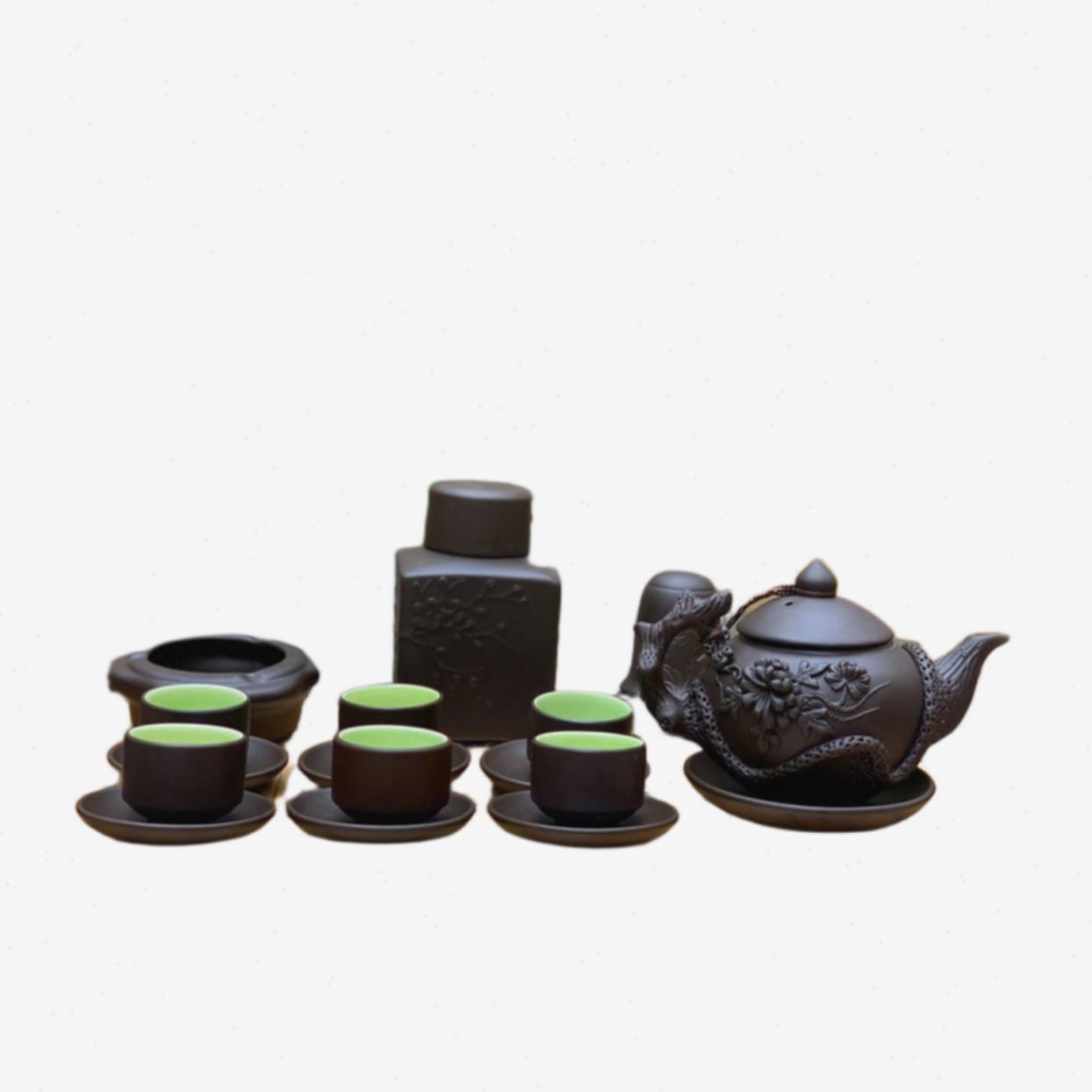 Bộ ấm chén tử sa đen đắp nổi hoa phù dung đầy đủ phụ kiện hứa hẹn là bộ dụng cụ pha trà vô cùng hoàn hảo gần nhất , cao cấp phù hợp làm món quà tặng thống kê , quà biếu đến những người bạn yêu quý những dịp đặc biệt.