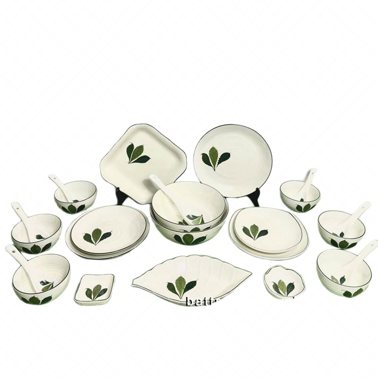 Bộ bát đĩa nhà hàng men xanh lá Ngò Gai hàng gốm sứ cao cấp Bát Tràng