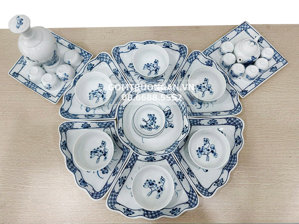 | Bộ sản phẩm bao gồm | 6 đĩa cánh phụ kiện , 6 bát cơm sản xuất , 1 bát mắm đặt hàng , 1 đĩa muối giá bán lẻ , 1 bát tô ở đâu , 1 bộ trà facebook , 1 bộ rượu |