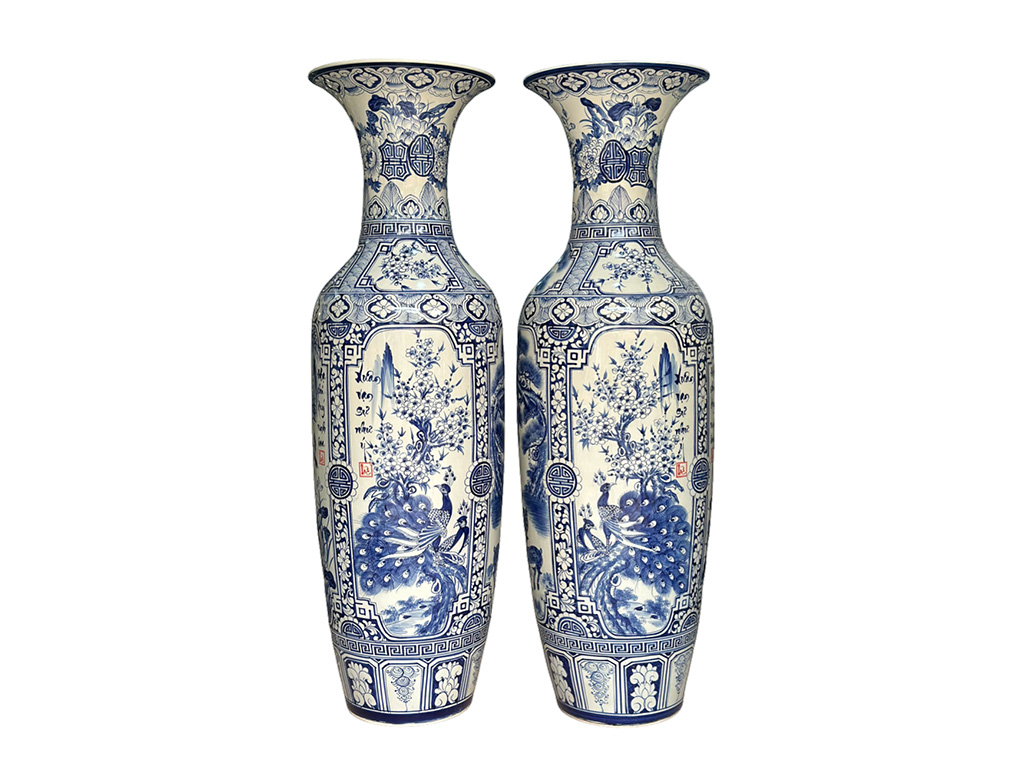 Lọ Lộc bình Bát Tràng men lam Tứ quý vẽ kĩ 1m25 là bức tranh phác họa chi tiết và sống động về chủ đề Tứ Quý quen thuộc với ý nghĩa về sự giao chuyển 4 mùa Xuân - Hạ - Thu- Đông mưa thuận gió hòa đấu giá , tấn tài tấn lộc.