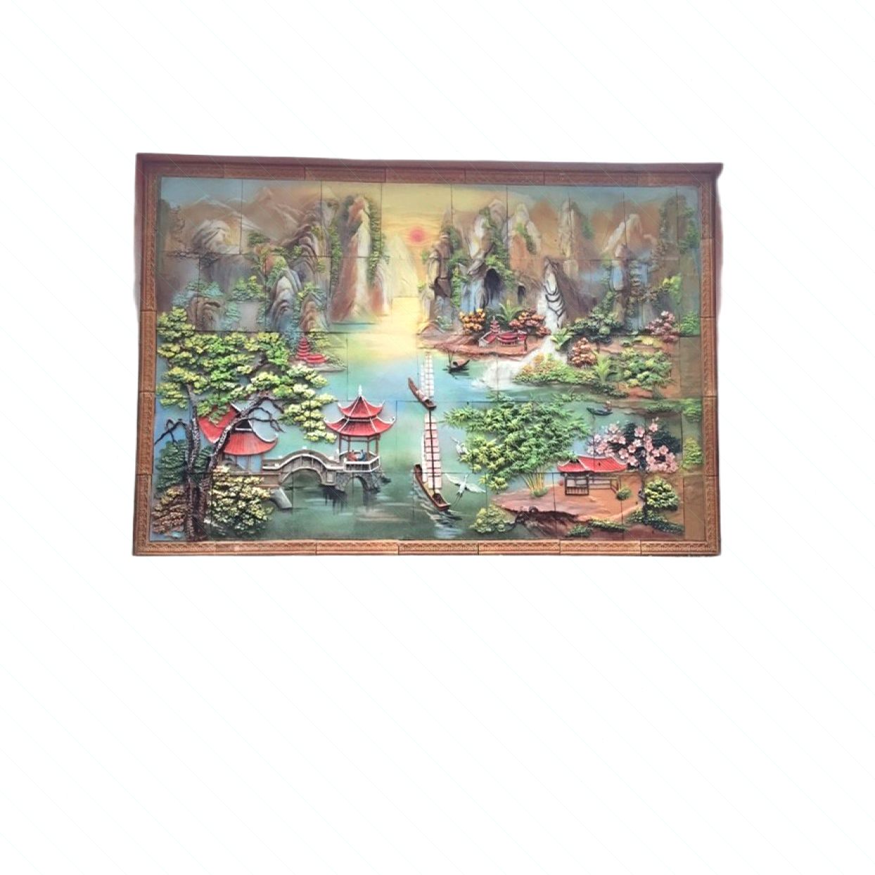 Tranh gốm ốp tường cảnh Sơn thủy hữu tình thuộc dòng tranh gốm ghép mảnh trang trí nội ngoại thất sở hữu chất liệu gốm Bát Tràng truyền thống trung tâm , giản dị với vẻ đẹp nghệ thuật cùng tính thẩm mỹ cao hàng Hiệu , và đặc biệt là khổ tranh lớn mang lại sự hoành tráng tiết kiệm , độc đáo khác hẳn với những loại tranh gốm thông thường.