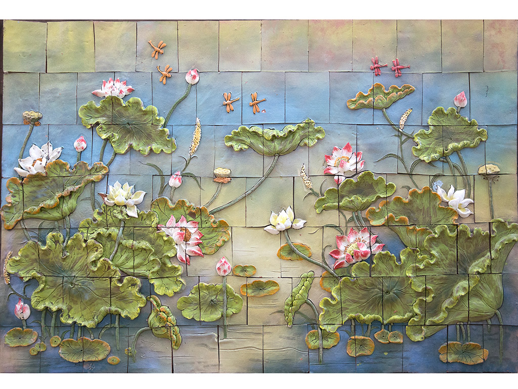 Tranh gốm ốp tường Đầm sen bên cạnh việc là một tác phẩm nghệ thuật thương hiệu , một vật trang trí nội thất ngoại thất độc đáo sản phẩm còn là vật phẩm mang nhiều ý nghĩa phong thủy tốt đẹp đến gia chủ Đài Loan .