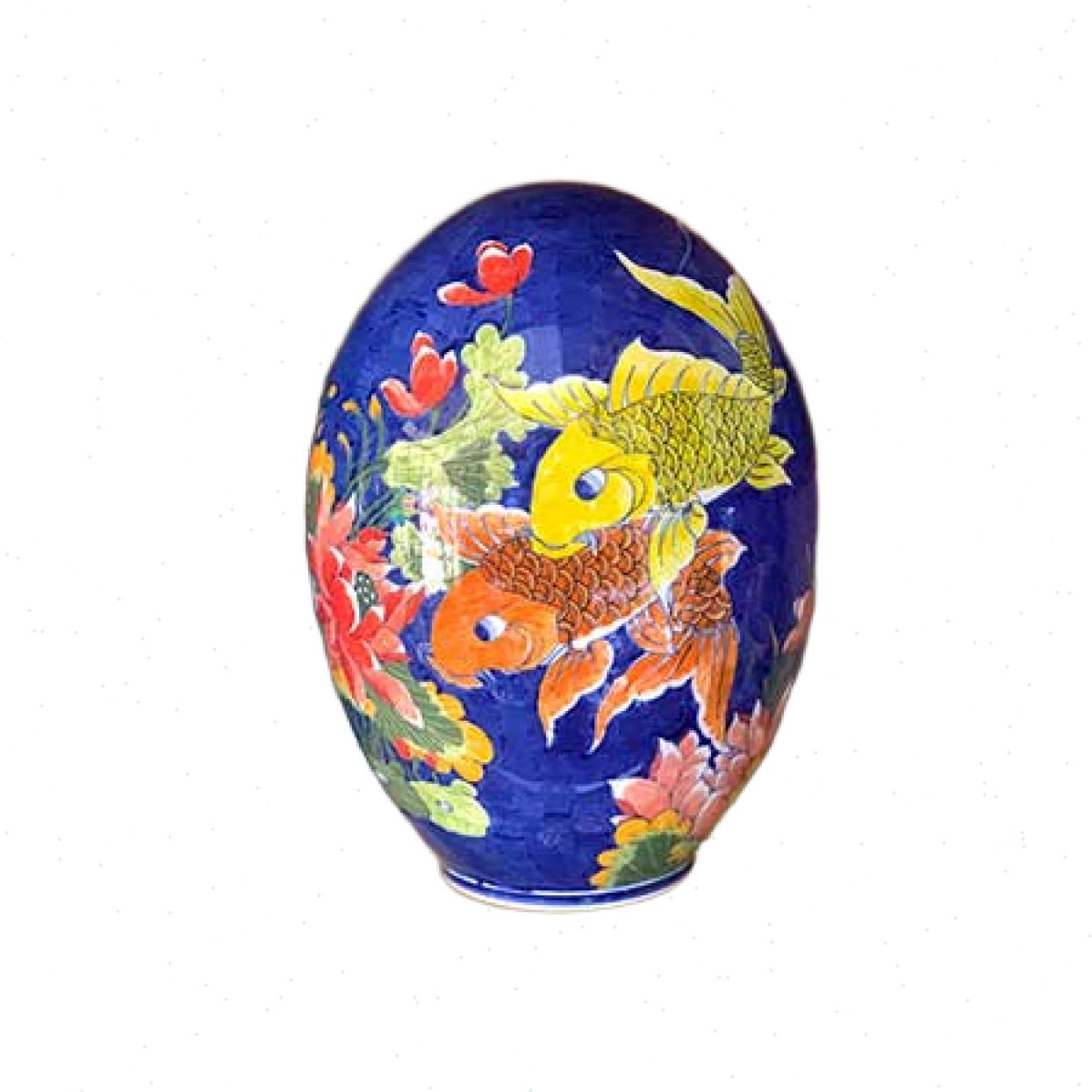Trứng sứ phong thủy vẽ cá chép hoa sen cao 40cm