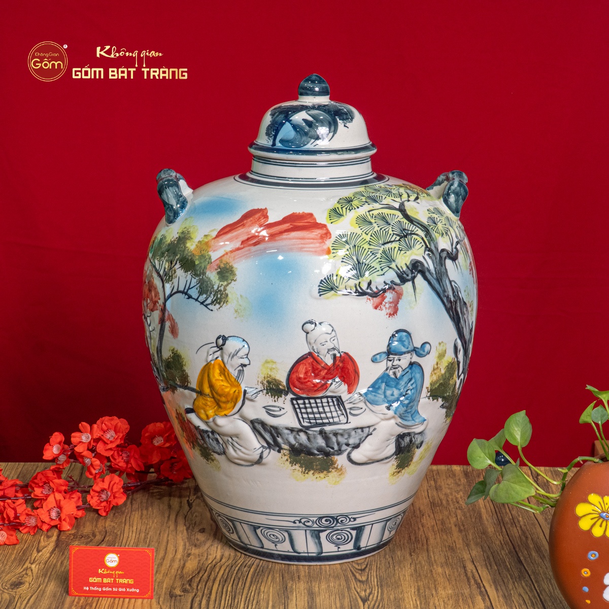 Vò Ngâm Rượu Họa Tiết Tiên Ông Đánh Cờ Vẽ Màu có diện mạo bắt mắt giá bán , tươi tắn và hài hòa giữa họa tiết và màu sắc tư vấn , giữa bố cục hình ảnh và bề mặt vò gốm vệ sinh . Màu men trên bề mặt vò gốm là sự kết hợp giữa những màu sắc cơ bản trong bảng màu nhưng đem lại hiệu ứng về thị giác tốt phụ kiện . Nhìn tổng thể mới nhất , chum sắc nét và có tính thẩm mỹ cao miễn phí , vừa dùng ngâm rượu vừa dùng trang trí nội thất. Thông thường thanh lý , hình ảnh này sẽ được thể hiện trên tranh nổi tiếng , bình gốm nhưng vò ngâm rượu Bát Tràng cũng đã có sản phẩm hình sen và cá chép vẽ tay. Thông thường ở đâu uy tín , hình ảnh này sẽ được thể hiện trên tranh ở đâu , bình gốm nhưng vò ngâm rượu Bát Tràng cũng đã có sản phẩm hình tiên ông đang luận cờ.